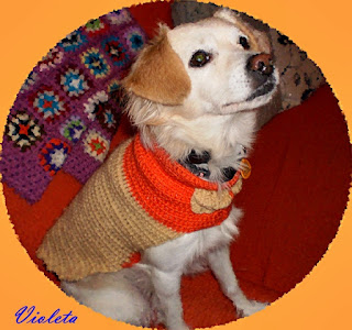 Este abrigo es muy fácil, está hecho todo en punto alto. Comencé por el cuello, una vez alcanzada la medida del cuello tomé la anchura que quería y tejí hasta el largo deseado.Hice una banda de sujeción detrás de las patitas y en este acaso no coloqué botones porque se colocaba bien. Espero que os guste. Saludos Violeta.
